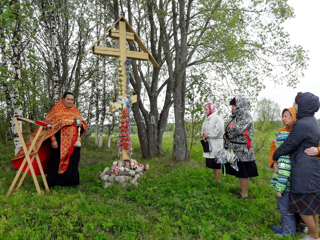 Крест установлен на месте сгоревшего в 1970 — е годы старинного храма в честь Владимирской иконы Божией Матери в деревне Щукозерье. 3 июня у Креста совершается молебен.
